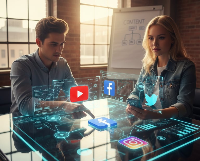 Social media management services, helping our clients build a strong online presence and connect with their audience across major platforms. Content creation and scheduling.